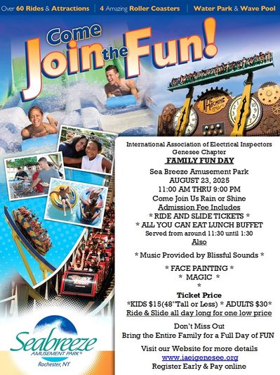 The Genesee Chapter of the International Association of Electrical Inspectors invite you to experience their educational events presented by experts in the field. The chapters programs are intended to help educate the electrical industry within our communities on the latest national, state and local code changes, safety issues and new products.